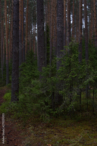 © Grigoriy, Naklejka premium Rainy day in the taiga forest