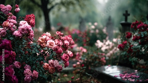 Fototapeta premium Rainy Day Roses in a Cemetery