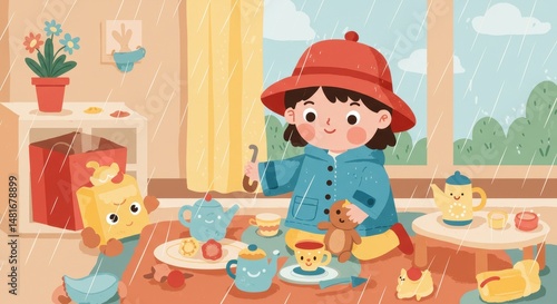 Obraz premium Rainy Day Tea Party: A Child's Cozy Indoor Playtime