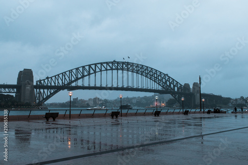 Naklejka premium Rainy day view on Sydney Harbour Bridge.