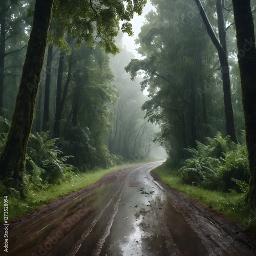 Obraz premium Rainy Forest Road