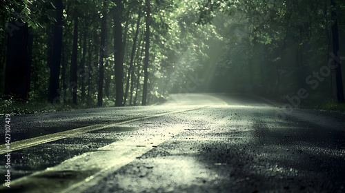 Obraz premium Rainy Forest Road Through Trees