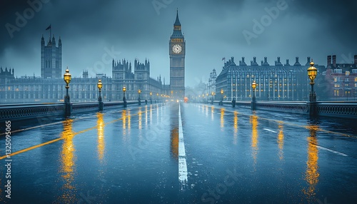 Naklejka premium Rainy London Bridge for Big Ben Dawn.