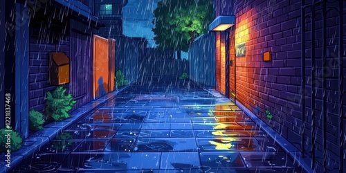 © NpicArt, Obraz premium Rainy Night Alleyway Scene Urban Setting Ambiance