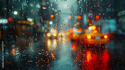 Obraz premium Rainy Night City Lights Through Wet Glass.