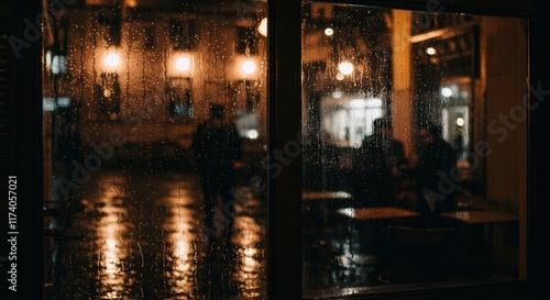 Obraz premium Rainy Night City Scene Viewed Through Window
