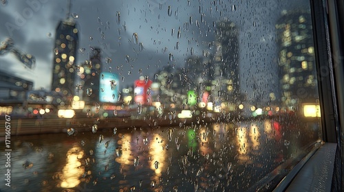 © PajriCreative, Obraz premium Rainy Night City View Through Window