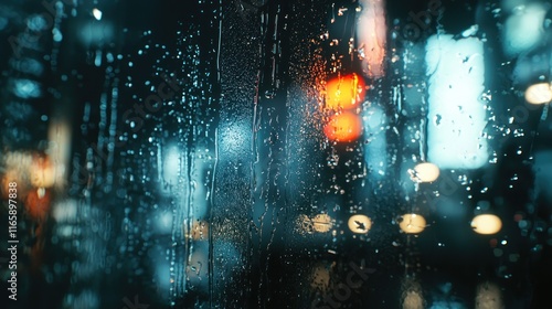 © sup, Obraz premium Rainy Night Cityscape: A Mesmerizing View Through a Wet Window
