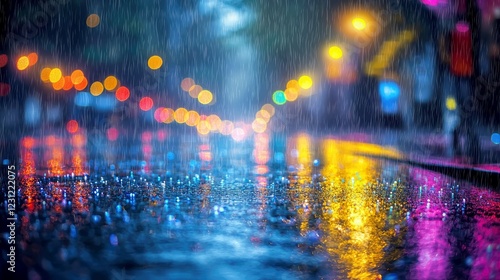 © Hammam, Naklejka premium Rainy Night Cityscape: Vibrant Reflections and Glowing Lights