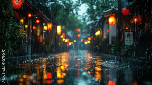 Naklejka premium Rainy night street scene in a Japanese alleyway