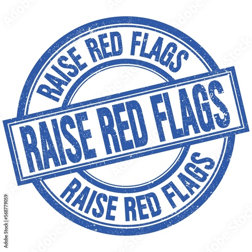 Fototapeta premium RAISE RED FLAGS written word on blue stamp sign