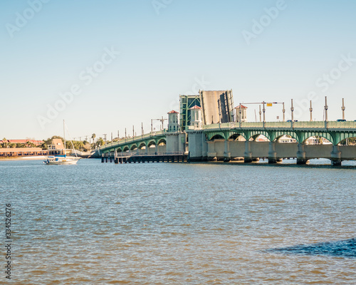 © Molly Southern, Naklejka premium Raised Drawbridge and Boat About to Enter Crossing Channel