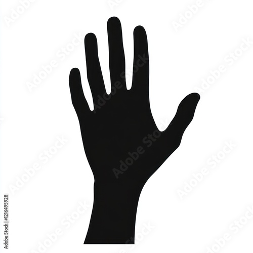Fototapeta premium Raised hand silhouette, white background, graphic design element.