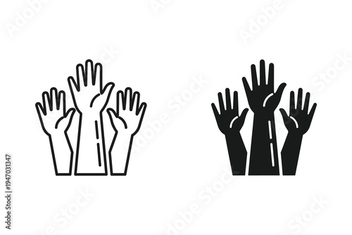 Obraz premium Raised Hands Icon Set - Line Art and Solid Style