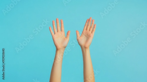 Obraz premium Raised Hands on Blue Background