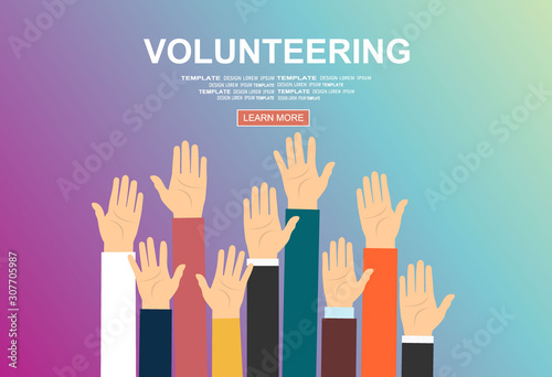 © mitay20, Obraz premium Raised hands volunteering vector concept