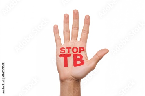 © Rizvan, Fototapeta premium Raised palm symbol, Tuberculosis awareness gesture, versatile design on white backdrop