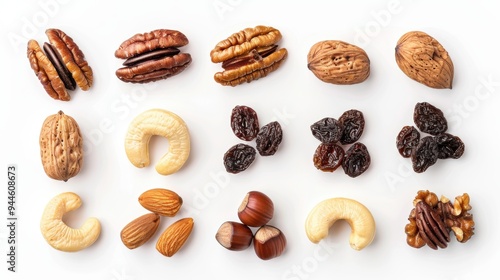 © Joyce, Obraz premium Raisin grain and a variety of nuts closeup view
