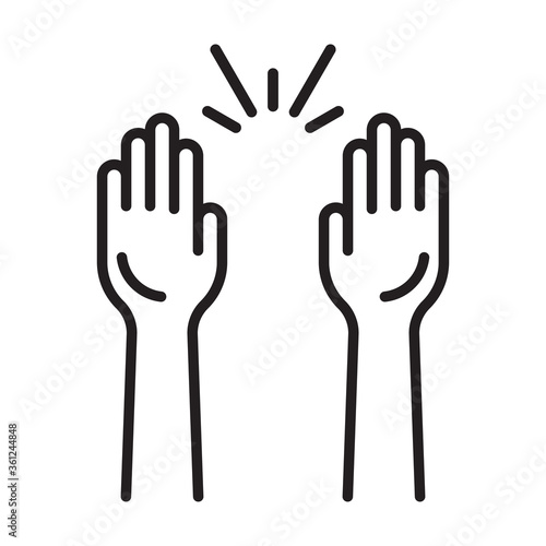 Obraz premium Raising hands audience celebrate line art icon for apps and websites