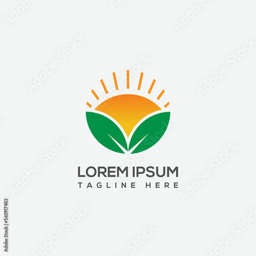 © Nampa, Fototapeta premium Raising sun with leaf logo design