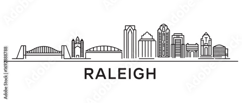 © Nargis, Fototapeta premium Raleigh Line Art skyline horizontal banner. Raleigh, North Carolina. Vector template for your design. with white background