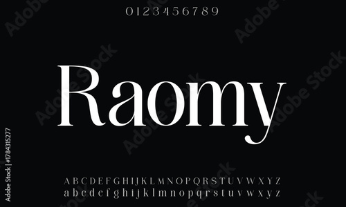 © Shihab, Obraz premium Rallomy Regular vector font alphabet with numbers