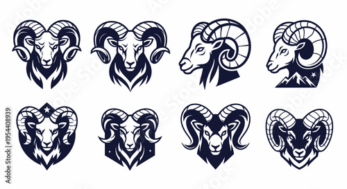 Obraz premium Ram Head Icons Set - Aries Zodiac Sign and Animal Emblems