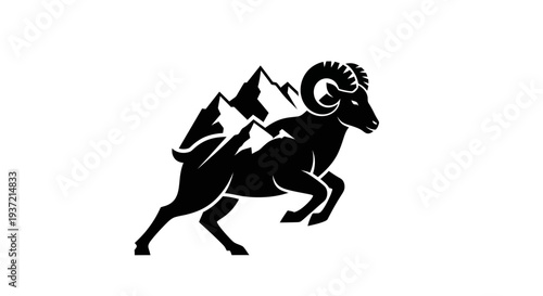 Obraz premium Ram silhouette with mountain peaks
