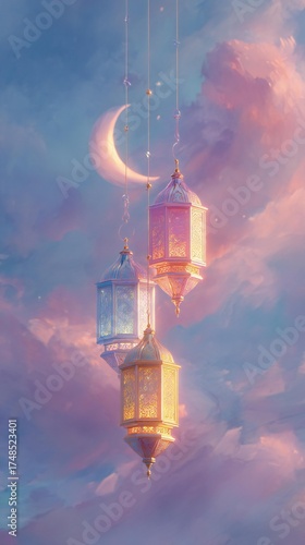 Obraz premium Ramadan Crescent Sky Lanterns Art