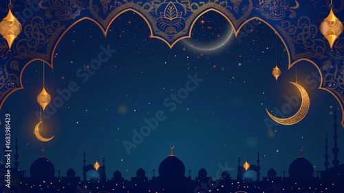 © Evon, Fototapeta premium Ramadan Festival Banner with Crescent Moon and Geometric Patterns