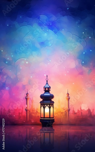 © Surf Ink, Fototapeta premium Ramadan kareem and eid fitr islamic concept lantern mosque oil painting background illustration in colorful aesthetic pastel color for wallpaper, greeting card and flyer.