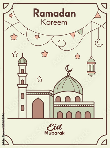 Naklejka premium Ramadan kareem and islamic line mosque. Greeting card islamic celebration background for graphic design vector stock illustration