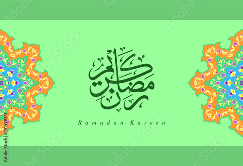 Obraz premium Ramadan kareem card design, ramadan kareem arabic calligraphy, traditional...