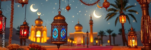 © emongraphic, Fototapeta premium Ramadan kareem, eid concept panorama Background