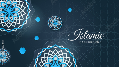 © Salman, Naklejka premium Ramadan Kareem islamic background. Mandala Flat flower Blue pattern Islamic design background. Ramadan Kareem abstract luxury islamic elements background