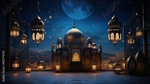 Fototapeta premium Ramadan Kareem Islamic backgrounds adorned with lanterns