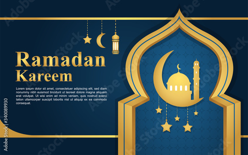 Fototapeta premium Ramadan Kareem islamic design crescent moon and mosque dome silhouette.