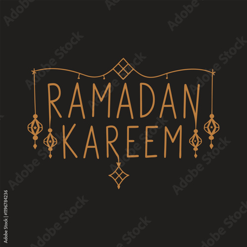 © Sk, Fototapeta premium ramadan kareem taxr effect with gilden coller.