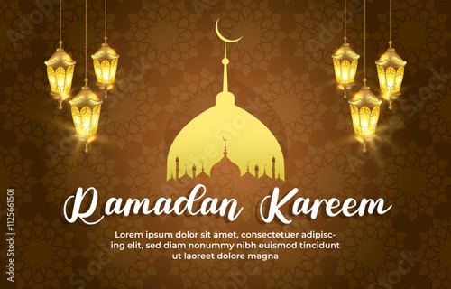 © Zc, Fototapeta premium ramadan kareem 2025 template banner with beautiful islamic ornament with brown background design 040