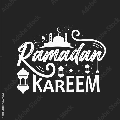 © Art_House254, Naklejka premium Ramadan Kareem typography. Vector calligraphy illustration. Handwritten greeting card, invitation etc.