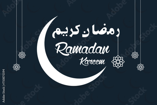 © Ahsan, Naklejka premium Ramadan Kareem vector greeting post design. Islamic holiday icon concept. Ramadan Kareem. Islamic greeting card template with Ramadan for wallpaper design.