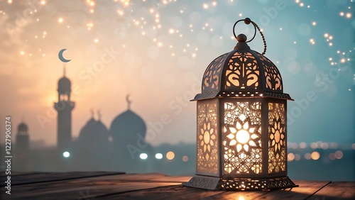 Fototapeta premium Ramadan Lantern with Intricate Design and Soft Bokeh Lights on Transparent...