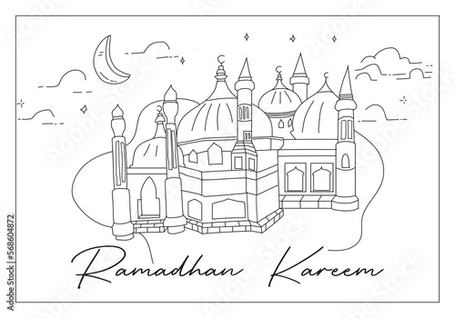Fototapeta premium Ramadan Mosque Outline Illustration