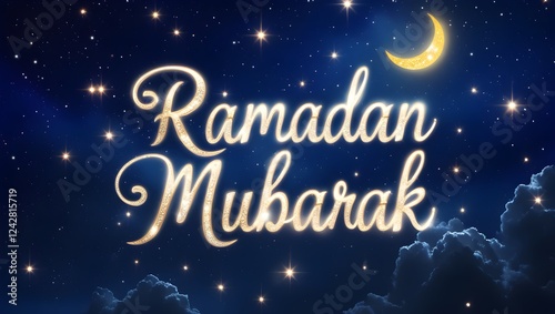 Fototapeta premium Ramadan Mubarak Greetings with Lanterns, Crescent Moon, and Islamic Symbols |...