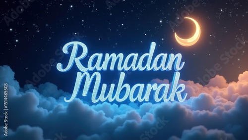 © mdtuhin, Fototapeta premium Ramadan Mubarak Wishes Under Moonlit Skies with Glowing Stars