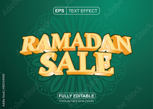 © Qompres, Obraz premium Ramadan Sale Editable Font. Gold font with green background. Graphic title theme for Ramadan sale promotions.