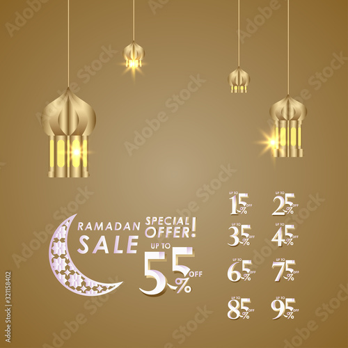 © Tobrono, Naklejka premium Ramadan Sale up to 55% off Special Offer Vector Template Design Illustration