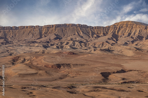 © dotsikalex1, Fototapeta premium Ramon Crater is an erosion crater in the Negev Desert. It is one of five craters in the Negev. At the edge of the crater is the city of Mitspe Ramon.