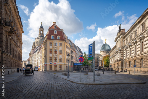 Fototapeta premium Rampische Strasse with Academy of Fine Arts, Albertinum and Frauenkirche Church - Dresden, Saxony, Germany