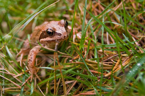 © Carlos, Fototapeta premium rana bermeja en la hierba de un monte de galicia, espa√±a